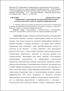 У статті подано результати дослідження психологічних особливостей розвитку комунікативної компетентності, її основних складових у психологів і педагогів у період їх первинної професіоналізації.