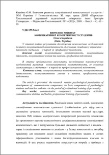 - Корніяка, Ольга Миколаївна (2009) Вивчення розвитку комунікативної компетентності студентів Психолінгвістика (3). pp. 60-69.