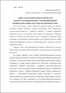 On the basis of the analysis of a volume of the educational programs maiden in terrain of the Russian empire of educational institutions of the academic type (Moscow Slavian-Greco-Latin and Kiev academy) in the article the items of information are resulted that the actual volume of knowledge, which one was taught in the Kiev academy, as against Moscow, gives its historians the indisputable right to recognize behind the Kiev academy the actual status maiden on time of educational entity, which one responded adopted on that time in Europe the requirements to educational institutions of the academic type.