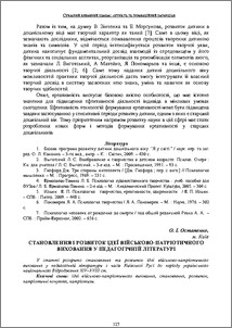 - Остапенко, О.І. (2014) The formation and development of the idea of military-Patriotic education in pedagogical literature In: Сучасний виховний процес: сутність та інноваційний потенціал Матеріали звітної науково-практичної конференції , 4 . НАІР, м. Івано-Франківськ, Україна, pp. 114-116.