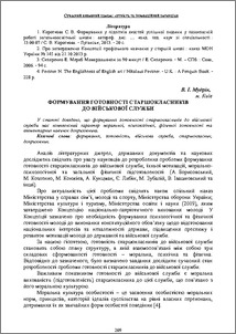 | Keywords: | формування, готовність, військова служба, старшокласник, допризовник. |