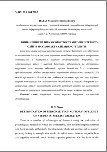 There is a number of advantages of Internet’s using for realization of psychological researches, which are comfortable, own powerful empiric potential and high enough authenticity. Developments which are carried out in Internet presently belong to enough wide circle of evident areas, however majority them are cognitive oriented, touch mainly cognitive processes. On the basis of the conducted research drawn conclusion that there are wide potentials for psychological researches in Internet for determination of personalities influence of internet sites’ authors on the students’ personality features of higher educational establishments’ stationary separations.