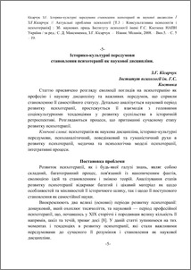 - Кісарчук, Зоя Григорівна (2008) Історико-культурні передумови становлення психотерапії як наукової дисципліни Актуальні проблеми психології [Т.3 : Консультативна психологія і психотерапія] (5). pp. 5-19. ISSN 2072-4772,1