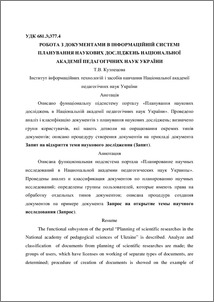 - Кузнецова, Т.В. (2012) Work is with documents in the Informatiоn system of planning of scientific researches of the National academy of pedagogical sciences of Ukraine In: Збірка матеріалів Всеукраїнської науково-практичної конференції Інформаційно-комунікаційні технології в освіті: досвід, інновації технічне забезпечення . РВВ Сумський СОІППО, м. Суми, pp. 37-39.