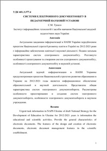 - Тукало, С.М. (2012) Системи електронного документообігу в педагогічній науковій установі In: Збірка матеріалів всеукраїнської науково-практичної конференції "Інформаційно-комунікаційні технології в освіті: досвід, інновації, технічне забезпечення" . СОІППО, м.Суми, pp. 48-50.