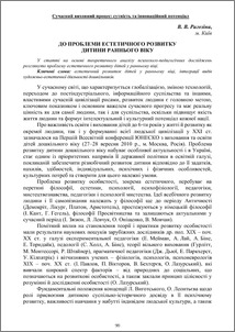 У статті на основі теоретичного аналізу психолого-педагогічних досліджень розглянуто проблему естетичного розвитку дітей у ранньому віці.