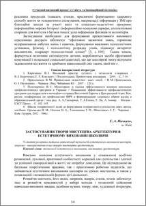 - Ничкало, Світлана Андріївна (2013) Застосування творів мистецтва архітектури в естетичному вихованні школярів In: Сучасний виховний процес: сутність та інноваційний потенціал: матеріали звіт. наук.-практ. конф. Ін-ту проблем виховання НАПН України за 2012 рік , 3 . "НАІР", м. Івано-Франківськ, Україна, pp. 241-244.