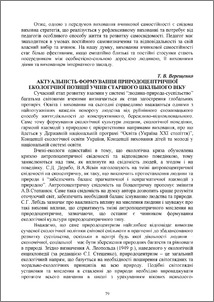 Стаття присвячена питанням формування природоцентричної екологічної позиції старшокласників.