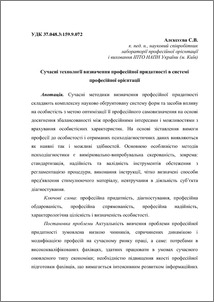 | Keywords: | professional suitability, diagnostics, professional gift, integrity of personality, professional orientation, professional reliability. |