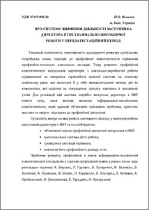This paper deals with the need to introduce systematic approaches to the study of the deputy director of vocational education institution for teaching and production activities in terms of information- analytical support under the current socio- economic requirements. The basic functions, objectives and facing the deputy director of mizhatestatsiynyy period. A program of professional competence Deputy for teaching and production work in the pre-certification period.