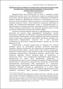 The problems caused by the essentially new requirements to teaching modern teachers of humanities. The conditions for the development of information technology education students - future teachers humanitarian specialties, it's task is to form an information technologies readiness in occupational and self-learning as one of the indispensable professional qualities of the modern teacher.