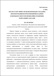 - Величко, Н.О. (2010) Analysis of the labor market as a necessary component of the forecasting needs of the workforce in the education area vocational schools Collected articles and International Education Forum "Personality in a single educational space". pp. 252-254. ISSN 976-966-191—041-5