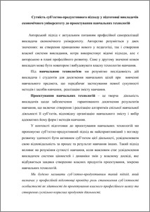 Охарактеризовано суб’єктно-продуктивний підхід у підготовці викладачів до проектування навчальних технологій, що забезпечує втілення унікального досвіду саморозвитку викладача у продуктах діяльності, створює умови для його самоактуалізації та рефлексії