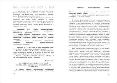 - Калюжна, Т.Г. (2012) Basic orienteers of organization of post¬graduate pedagogical education in Ukraine. In: Сучасна післядипломна освіта: традиції та інновації: матеріали міжнародного практичного семінару , 2012 . Національний педагогічний університет імені М.П. Драгоманова, м. Київ, Україна, pp. 26-34.