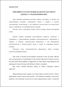 - Бастун, Микола Володимирович (2010) Possibilities of dialogical cultural approach in orientalistic education Збірник наукових праць Ін-ту психології ім. Г.С.Костюка НАПН України , 5 (т. ХІІ). pp. 35-50.