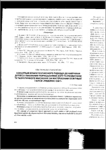 - Покутнєва, С.О. (2012) The concept of competence-based approach to teach children with profound visual impairment and the development of their theoretical thinking educational materials in the field of «Man and the world» Освіта осіб з особливими потребами: шляхи розбудови, 1 (3). pp. 110-118. ISSN 978-966-644-288-1