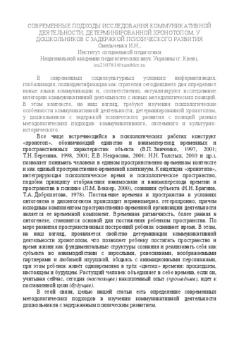 The publication designated perspective directions of theoretical and empirical study of communicative activity, deterministic chronotope, in preschool children with mental retardation.