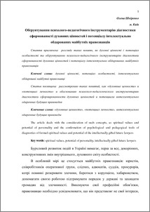 - Шкіренко, Олена Віталіївна (2014) Approval of psycological and pedagogical diagnostic outfit of mental values and potential Education and Development of Gifted Child, 6 (25 ). pp. 15-19. ISSN 2309-3935