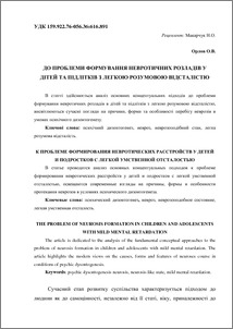 - Орлов, О. В. (2013) The problem of neurosis formation in children and adolescents with mild mental retardation Освіта осіб з особливими потребами: шляхи розбудови, 1 (4). pp. 282-292. ISSN 978-966-189-233-3