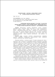 The concept of implementing modern standards of professional education into the learning process of higher school on the basis of competence approach in foreign countries has been analyzed. It has been found out that the main idea of the competence approach is competence-oriented education, aimed at complete assimilation of knowledge and different ways of practice activity through mastery of the relevant competencies by which one successfully realizes himself/herself in various areas of professional activities, acquires social autonomy, becomes mobile and qualified. Comparative analysis of Ukrainian higher education standards and similar standards used in the developed countries has been done. Changes in the forms and methods of organizing the educational process that have recently happened in some English-speaking countries, such as the USA, Great Britain and Canada, have been revealed. Advanced teaching methods such as project-based learning, problem-based media technologies, microteaching etc. have been described. Special attention has been paid to the evaluation of professional education standards which is aimed at assessing the quality of staff performance to satisfy the needs of the employers and social partners. General approaches to the content of professional standards which include professional training profile or work profile, examination requirements, admission requirements and curriculum have been considered. The author has singled out three functions of the requirements to the standards ofprofessional training quality, according to which they provide the connection between professional training and the sectors of economy which offer the vacancies for graduates; the comparability of diplomas and certificates within the country and the internationally acknowledged qualification level.