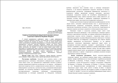| Keywords: | higher education, university, Great Britain, integration, educational reforms, the binary model of education, a common European educational space |