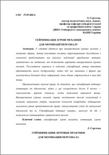 - Сергеєва, Л.М. (2014) Gamification: game mechanics to motivate staff Теорія та методика управління освітою: Електронне наукове фахове видання , 2 (15). ISSN 2310-2411