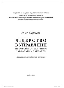 Сергеєва, Л.М. (orcid.org/0000-0002-7177-3014) (2011) Лідерство в управлінні професійно-технічним навчальним закладом . Арт-економі, м. Київ, Україна. ISBN 978-966-2576-17-7