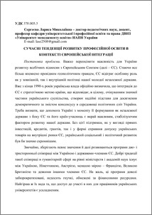 The article describes processes of European integration of Ukrainian education and academic sectors, which correspond to the strategic goals of the Ukrainian state and society related to full integration into the European Union and creation of a unified political and value space in the new Europe through a democratic consensus of Ukraine’s political elites. The author stresses that the «European idea», expressed in Ukraine’s national goal of entering the European Union, continues to increasingly occupy thoughts of the Ukrainian society. It speeds up, primarily, the development of the civil society. In certain Ukrainian regions, for instance in Western Ukraine, the level of support to EU integration is even higher than in our neighboring countries that have already become members of this community of nations. The author analyzes existing legislation and regulations as well as barriers to transferring Ukraine’s vocational education to European standards. The article identifies priority areas for the development of vocational education in Ukraine and key factors influencing the global education environment, among which are internationalization of training programs, teaching, learning and research; institutional agreements; mobility of teachers and students; various forms of cooperation etc.