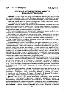 - Сулима, О.В. (2011) Німецький досвід підготовки магістрів дошкільної педагогіки Педагогіка вищої школи: методологія, теорія, технології (Том 2). pp. 411-416.