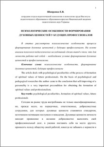 | Keywords: | psychological peculiarities, formation of spiritual values, future professionals |