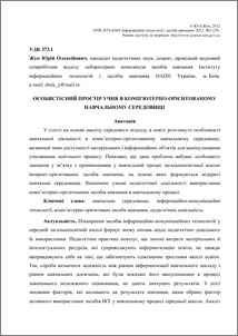 - Жук, Ю.О. (2012) Рersonal pupil space in computer-oriented educational medium Інформаційні технології і засоби навчання , 3 (29). ISSN 2076-8184