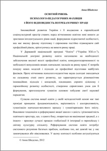 - Шиделко, А.В. (2012) The educational level of psychological and educational professionals and its relevance to labor market needs НАПН України, "Педагогічна думка". p. 20.