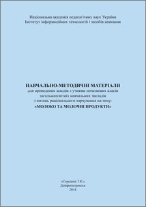 Довгань, А.І., Овчарук, О.В. and Пужайчереда, Л.М. (2014) Молоко та молочні продукти: Навч.-метод. матеріали для проведення заходів з учнями початкових класів загальноосвітніх навчальних закладів з питань раціонального харчування . «ФОП Середняк Т.К.», м. Дніпропетровськ, Україна. ISBN 978-617-7029-76-1