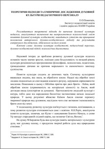 Theoretical approaches to the study of the spiritual culture of the teacher analyzed the definition and singled out the psychological meaning of the spiritual culture of the individual, given the nature and the fundamental provisions of copyright spiritual and personal approach and the results of empirical research conducted on this basis.