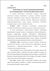 The psychological essence of the becoming of the economic culture in the space of personal property is analyzed in this paper. Attributes of property are posted. Social-psychological understanding of personal property is grounded. The theoretical structural-functional model of the becoming of the pupil’s economic culture in the system of private property is represented.
