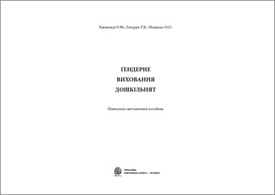 Посібник орієнтований на ознайомлення вихователів і психологів, керів- ників дитячих навчальних закладів та батьків з основами ґендерних знань та способами їх передачі дітям дошкільного віку. Розвиток у дошкільників вмінь підтримувати рівноправні стосунки з особами протилежної статі в майбутньому стане добрим фундаментом побу- дови гармонійних міжстатевих стосунків та успішного виконання сімейних та соціальних ролей — професійних, громадсько-політичних, культурних.
