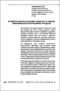 | Keywords: | professionalism, European integration, psychological and pedagogical training |