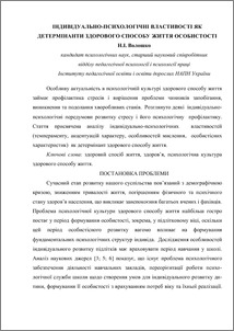 - Волошко, Наталія Іванівна (2010) Individual psychological characteristics as determinants of healthy lifestyle personality Actual problems of psychology (27). pp. 294-300. ISSN 2072-4772