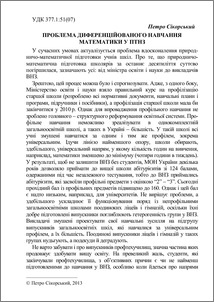 - Сікорський, П.І. (2013) The Problem of Differentiated Mathematics Teaching in Vocational Schools Педагогіка і психологія професійної освіти, 3. pp. 31-38. ISSN 2218-5186