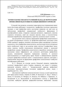 - Дубницька, О.М. (2013) Компетентністно-інтегративний підхід до формування професійної підготовки фахівців швейного профілю Нові технології навчання (76). pp. 246-250.