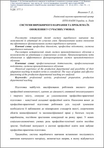 Historical experience of the production departmental and possibility of their adaptation teaching in modern terms is considered. The ways of update and effective functioning of the production departmental teaching are analysed.