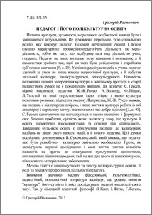 - Васянович, Г.П. (2013) Teacher and his/her Polycultural Education Педагогіка і психологія професійної освіти (1). pp. 25-35. ISSN 2218-5186