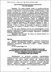- Пазюра, Н.В. (2013) Organizational and pedagogical conditions of workers' professional training in Japan and South Korea by educational providers Освіта дорослих: теорія, досвід, перспективи (7). pp. 296-308. ISSN 2308-6386