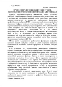- Онищенко, В.Д. (2013) Professional Self-Concept of a Personality: Psychological and Noological Contexts of Identification Педагогика и психология профессионального образования (5). pp. 145-156. ISSN 2218-5186