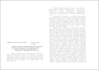 - Тринус, О.В. (orcid.org/0000-0003-2945-0796) (2012) Creative research training of teachers of Postgraduate Education of Ukraine late XII - beginning of XX century Освіта дорослих: теорія, досвід, перспективи, 4 (48). pp. 274-282.