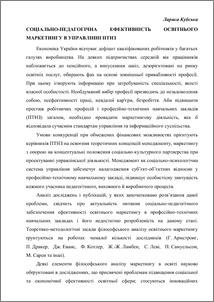 - Кубська, Лариса Іванівна (2013) Соціально-економічна ефективність освітнього маркетингу в управлінні ПТНЗ In: XII Педагогічні читання, присвячені пам"яті В.П.Жука . "Сполом", м.Львів, Україна, pp. 105-110.