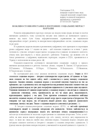 Possibilities of the use of electronic social networks are exposed in the educational process of general educational establishment.