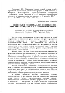 - Сліпчишин, Л.В. (2013) Substantiation of conceptual basis of design-education of technical’ specialists Материалы Международной научно-практической конференции “Садыковские чтения: Проблемы и пути внедрения инновационных технологий в образовательное пространство". pp. 132.-134.
