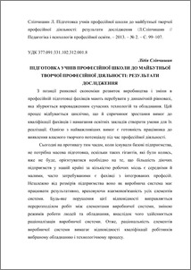 - Сліпчишин, Л.В. (2013) Preparation of vocational schools’ students for future creative professional activity: the results of research Педагогіка і психологія професійної освіти (2). pp. 99-107. ISSN 2218-5186