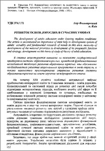 The development of adults education under existing modern conditions. The article is accentuated on importance of state help to development system of adults' actuality and fundamental research of trends in this area, necessity of development of the national priorities to development of its prognostic function and strategy, development on this basis of study of theory of adult education.